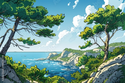 © Wilujeng Graphic, Naklejka premium A lively and colorful forest and field