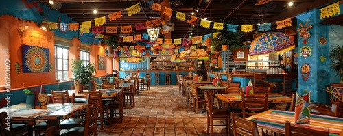 © Влада Яковенко, Naklejka premium A lively Cinco de Mayo fiesta with mariachi music, dancing, and colorful decorations.