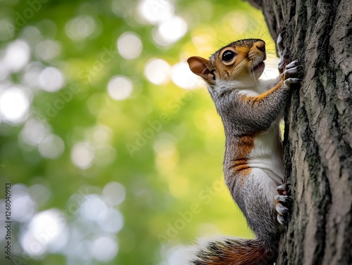 © bvbflo1, Fototapeta premium A lively squirrel playing in a tree in a park