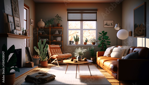 Fototapeta premium A living room that's warm and welcoming with earthy tones and natural...