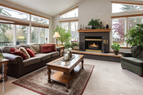 © altitudevisual, Fototapeta premium a living room with an irregularly shaped coffee table
