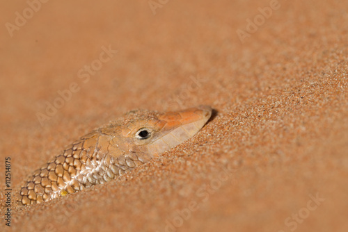 Naklejka premium A Lizard Hiding in the Hot Desert Sand