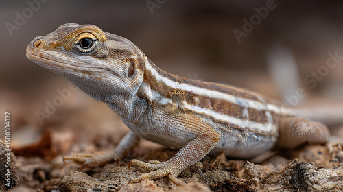 Naklejka premium A lizard with a long tail and a white stripe on its back