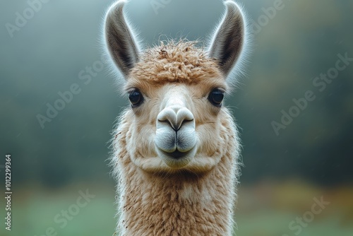 © miss_fortuna, Obraz premium A llama in a lush green field. Generative AI