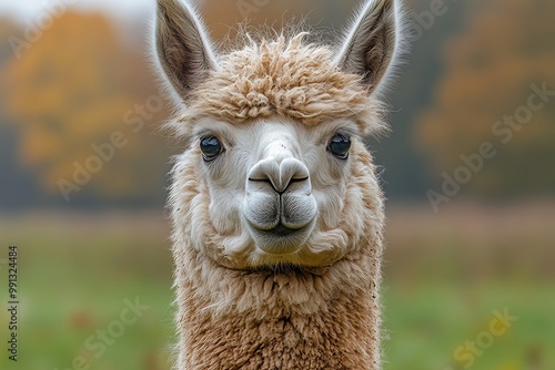 © miss_fortuna, Obraz premium A llama in a lush green field. Generative AI