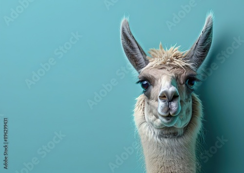 © mariapom, Obraz premium A Llama isolated on a Blue Background