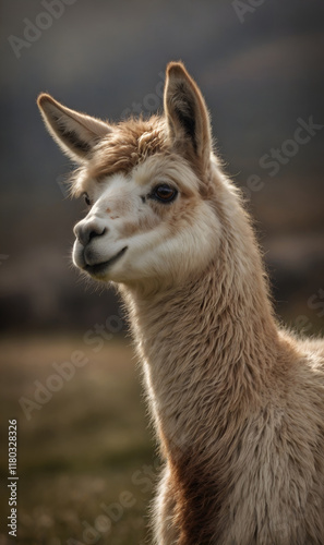 © A_A88, Fototapeta premium A llama on a farm surrounded by soft rustic colors.