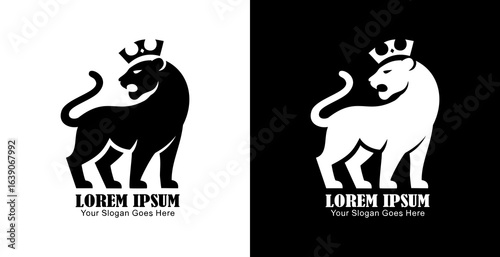 © Yohanes, Obraz premium A logo design of a panther wearing a crown with a simple modern shape
