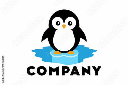 Naklejka premium A logo with a cartoon penguin standing next to it