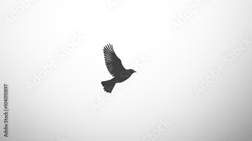 © Woranittha, Fototapeta premium A lone bird flying across a clear, pale sky
