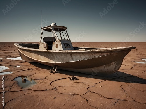 © Ekasak, Fototapeta premium A Lone Boat Basking in Desert's Embrace