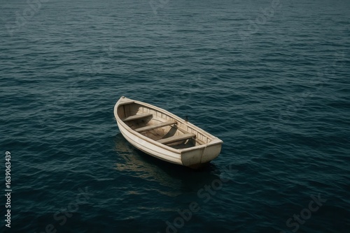 © Albert, Naklejka premium A lone boat drifts peacefully on the vast ocean