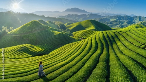© wijayanto, Obraz premium A lone figure in a tea plantation