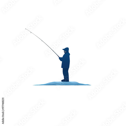 © BoOm, Obraz premium A lone fisherman on a frozen lake enjoys the serenity and challenge of ice fishing during the winter season. transparent background