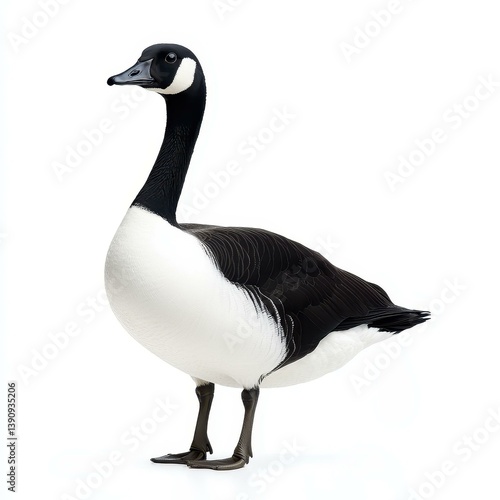 Obraz premium A lone goose stands proudly against a crisp white backdrop, highlighting its...