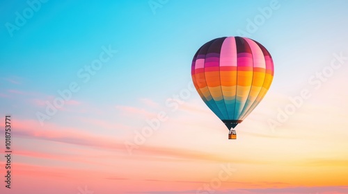 Obraz premium A lone hot air balloon floats gently through the sky, its colorful silhouette...