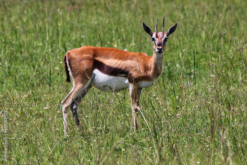 Obraz premium A lone Male Thomson's Gazelle in the Maasai Mara, Kenya, Africa
