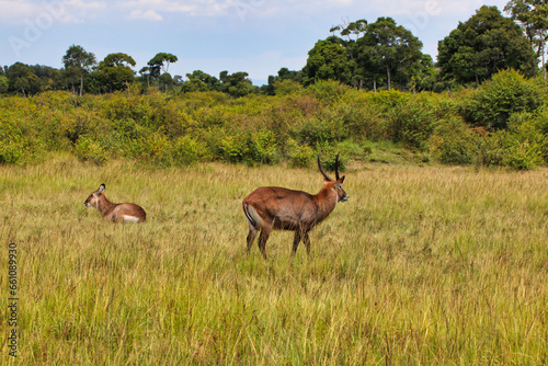 © InnerPeace, Fototapeta premium A lone male Waterbuck near marshy areas in the Maasai Mara, Kenya, Africa