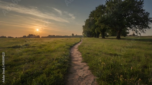 © Shehroz, Obraz premium A lone path stretching into the distance through a meadow