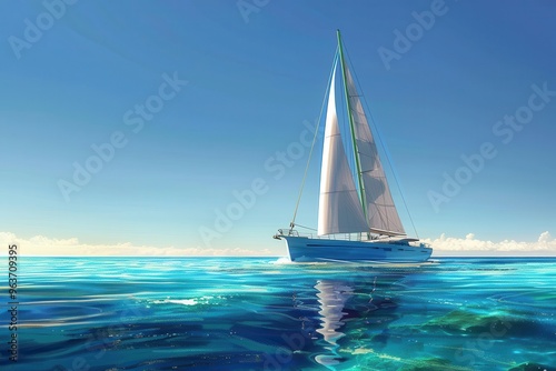 Fototapeta premium A lone sailboat gliding across calm turquoise waters under a clear blue sky...