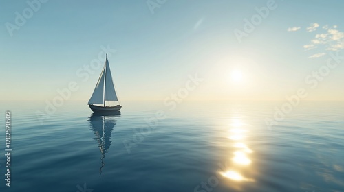 © Anisah, Fototapeta premium A lone sailboat gracefully sailing on calm waters at sunset providing peaceful and serene scenery