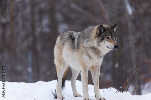 © Joe, Fototapeta premium A lone timber wolf in winter