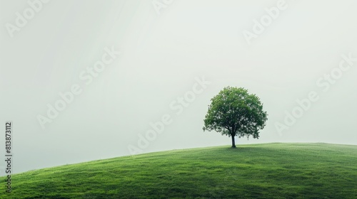 © AkuAku, Fototapeta premium A lone tree set against a blank backdrop perfect for enhancing graphic elements in celebration of World Environment Day