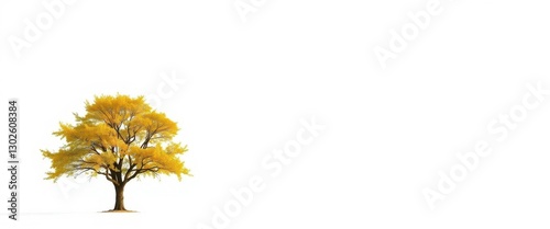 © Kraengkrai, Obraz premium A lone tree stands stark against a pure white backdrop, picture, outdoor
