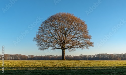 © Tanya, Fototapeta premium A lone tree stands tall against a clear blue sky