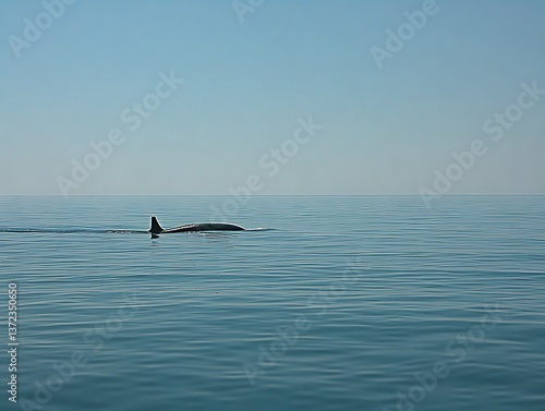 Fototapeta premium A lone whale gracefully swims through calm ocean waters peacefully