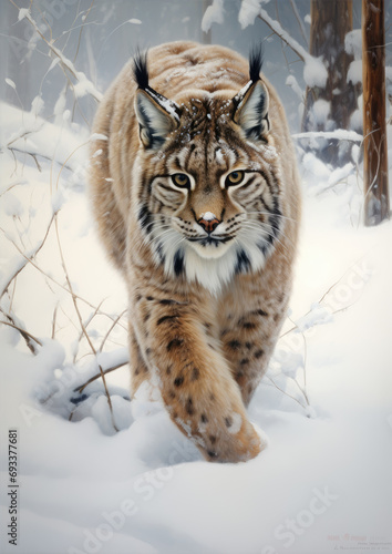 © amazingfotommm, Obraz premium A lonely lynx in the winter forest