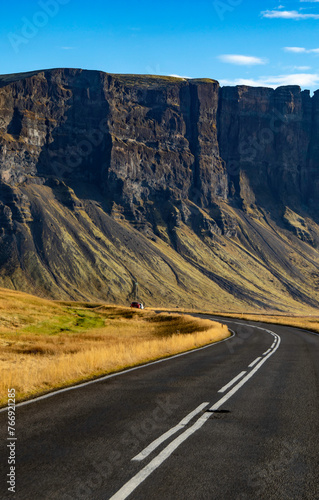 © Firnthirith, Fototapeta premium A lonely road with a mountain in the background