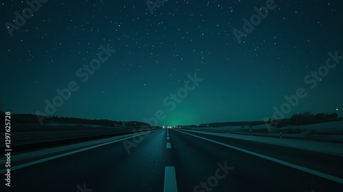 Fototapeta premium A long asphalt road under a vast dark starry sky