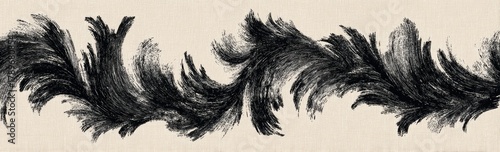 © Rizky, Obraz premium A long, dark, swirling, textured botanical design element on a pale background, resembling a feathered embellishment