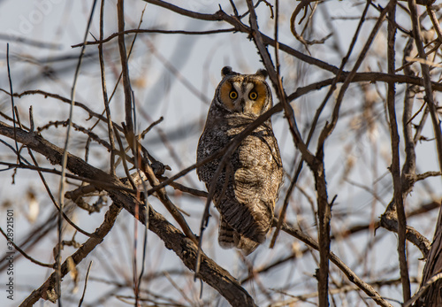 Obraz premium A Long-eared Owl Perched in a Tree