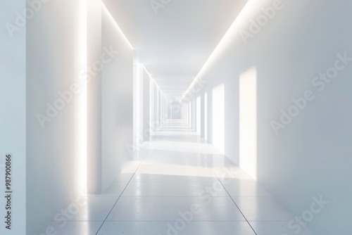 Fototapeta premium A long, empty hallway with white walls and white flooring, generative ai image