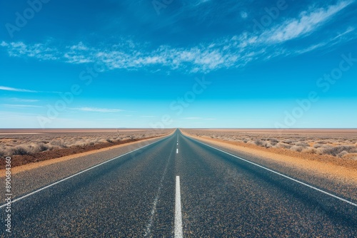 Naklejka premium A long, empty road stretches out into the distance. Road to somewhere concept