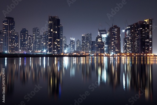 Naklejka premium A long exposure and blurred lights photo of a city, no car in the view,