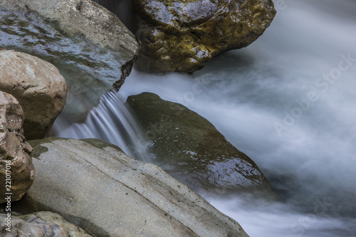 © Janisphoto, Fototapeta premium A long exposure of a river flowing along rocks