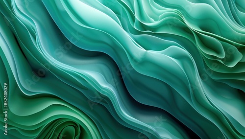 © Ashalina, Obraz premium A long, flowing green wave of fabric