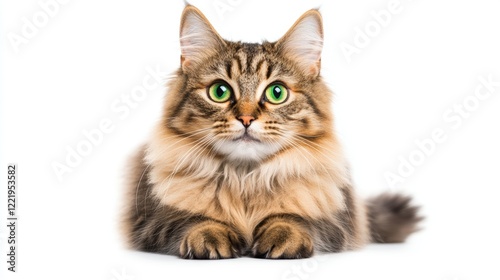 © EmmaStock, Obraz premium A long-haired Persian cat with bright green eyes, sitting regally on a white surface
