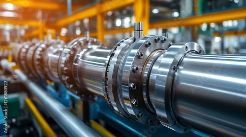 Obraz premium A long industrial pipe with multiple valves, symbolizing control and...