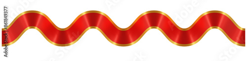 Naklejka premium A long red ribbon with gold trim in a curved shape. 3D rendering.