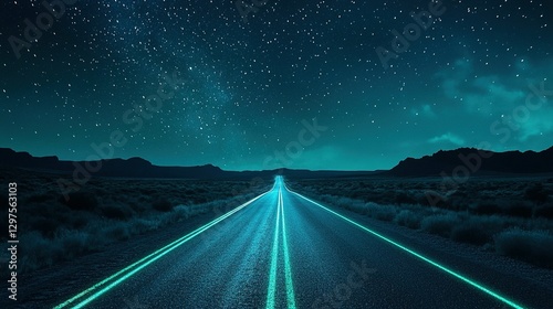 © Pixel-Tropic, Fototapeta premium A long straight road leads into the star filled night sky