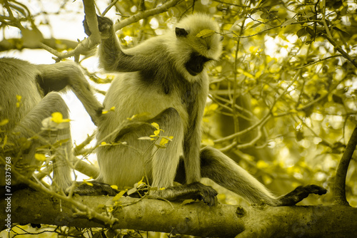© SUSMIT, Obraz premium a long tailed macaque sitting on a branch