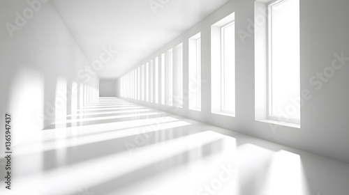 © Almultazam, Fototapeta premium A long white corridor illuminated by bright natural light