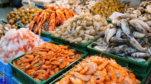 © Kondor83, Fototapeta premium A lot of fresh seafood on local fish market
