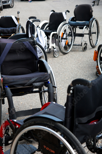 © fabiosimonelli, Fototapeta premium a lot of whellchairs
