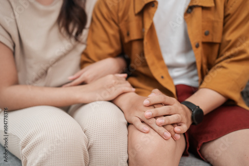 © Odua Images, Fototapeta premium A lovely couple sharing a tender moment together, holding hands in an inviting, cozy atmosphere