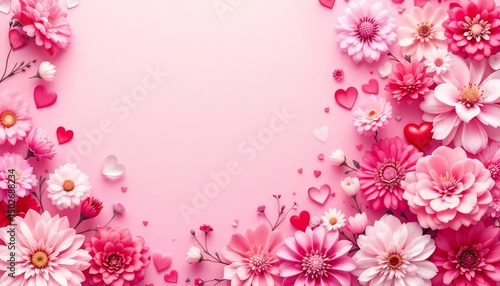 © Shams, Fototapeta premium A lovely pink floral arrangement with multiple heart shaped decorations